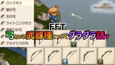 今回はFFTに登場する自動弓に注目してダラダラ話していきたいと思います。今作の自動弓は全部で6種類あり 序盤から遠距離攻撃の手段として登場しますが弓と比べると 基本攻撃力の低さが目立ったり 軌道の違いなどがあります。という訳で今回はそんな自...