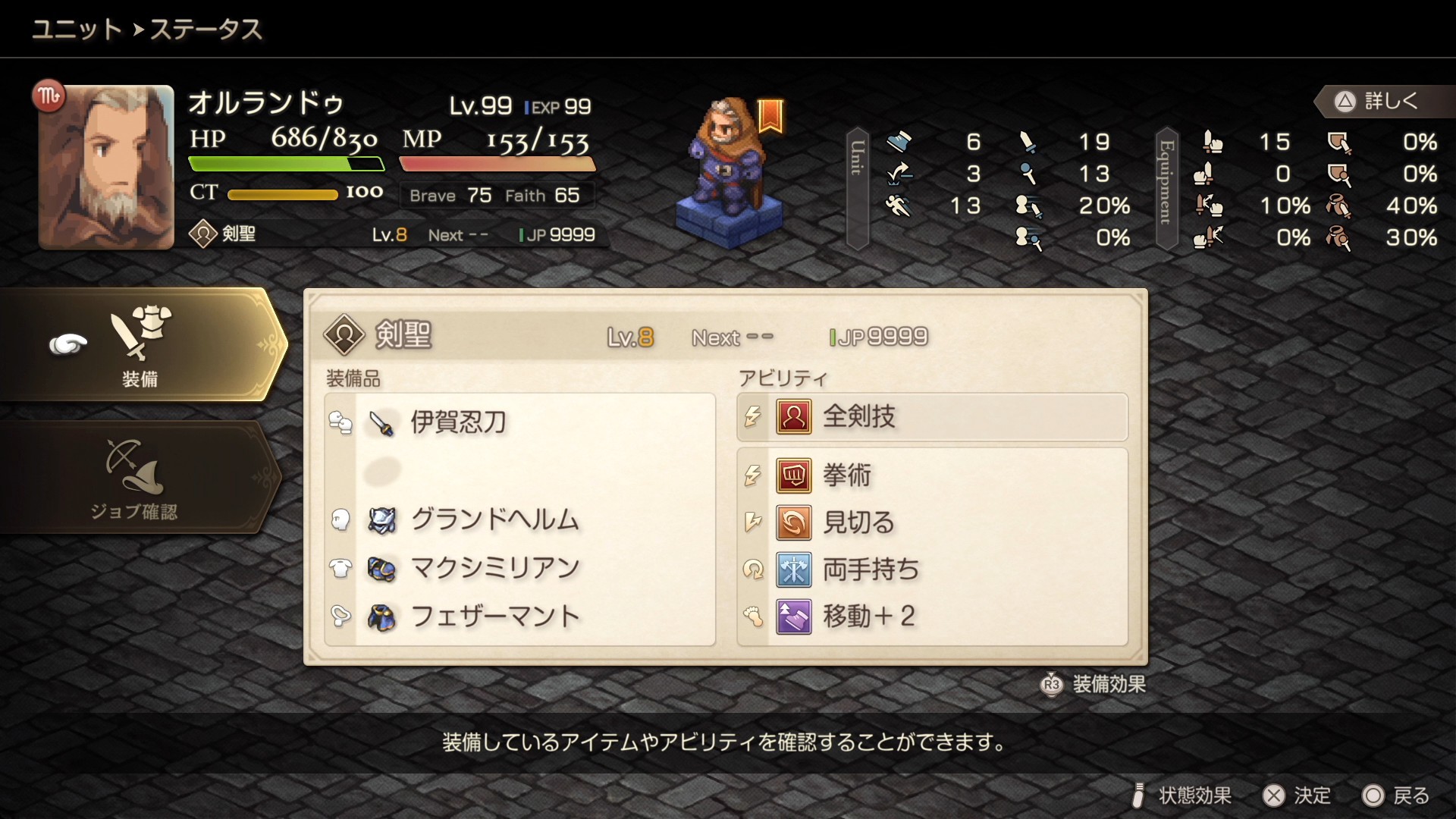 まず忍者刀は忍者と剣聖が装備でき 忍者は二刀流がデフォルトであるのでいいのですが剣聖は聖剣技も使えないし なによりオルランドゥは初めからエクスカリバーを装備しているため 忍者刀一本を装備する事はまずありえません。