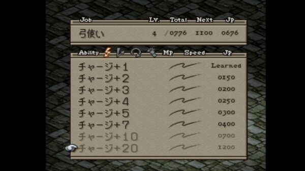 ちなみにチャージ+20を覚えるのにジョブポイント1200必要でしたが リメイクでは900で済みます。